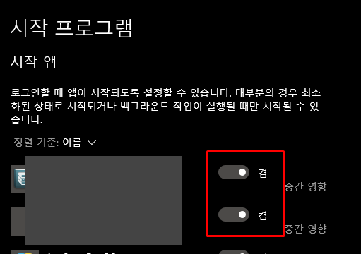 2. 윈도우 설정에서 시작앱 켜기